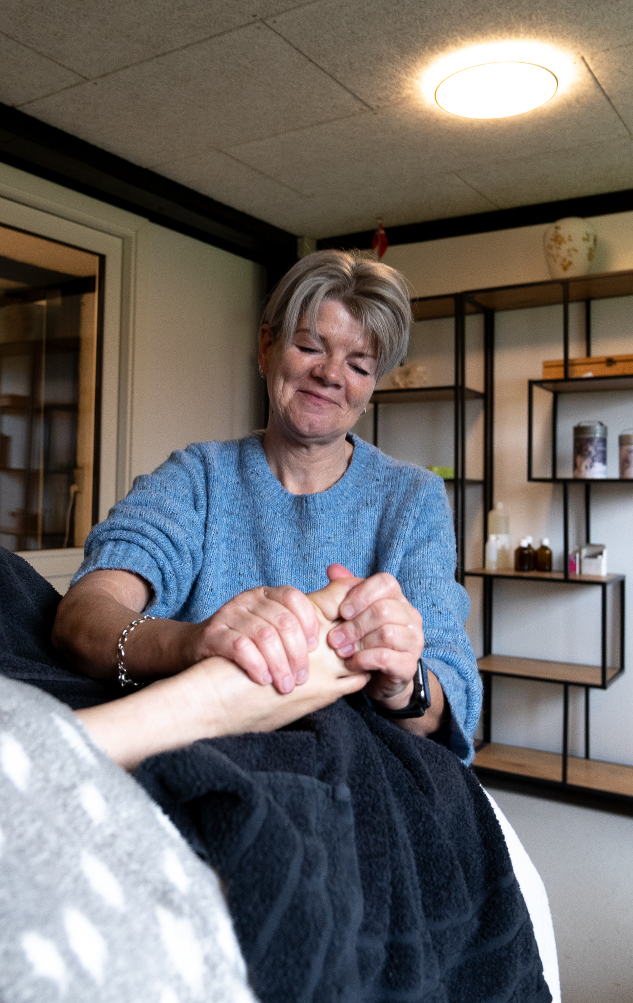 Ved at arbejde med reflekszonerne under fødderne, kan vi støtte kroppen i at give slip, genfinde ro og skabe ny energi.